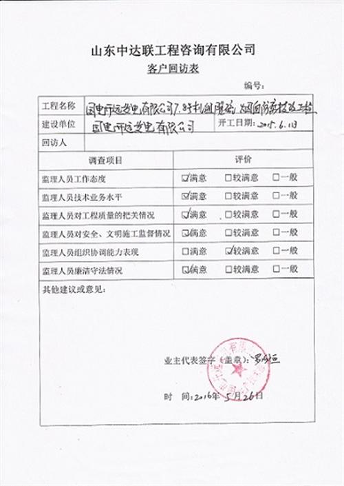 華電濰坊發(fā)電有限公司回訪表